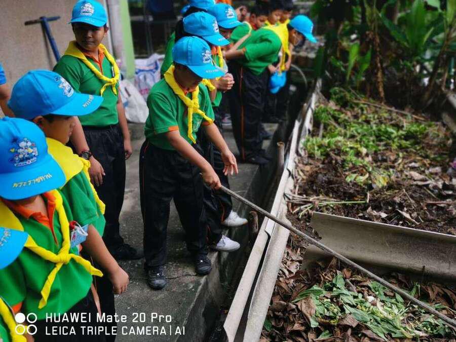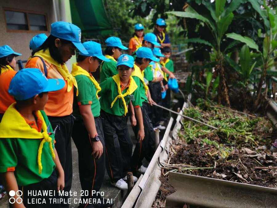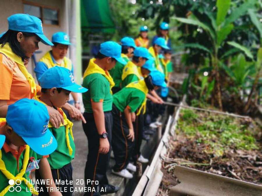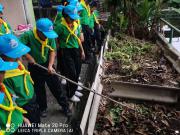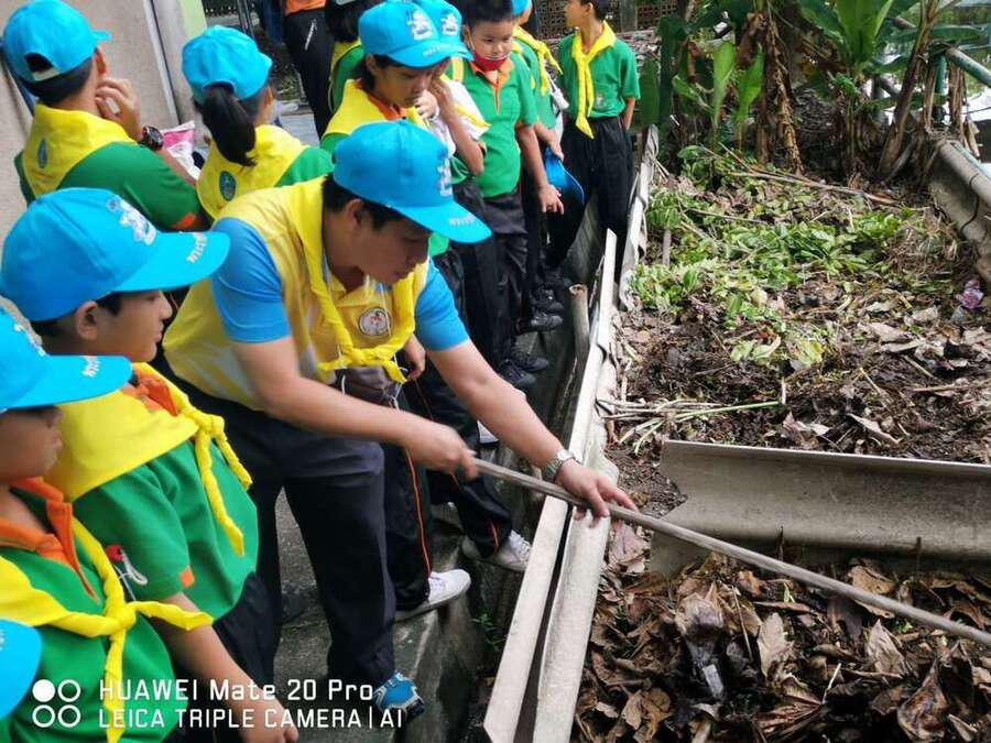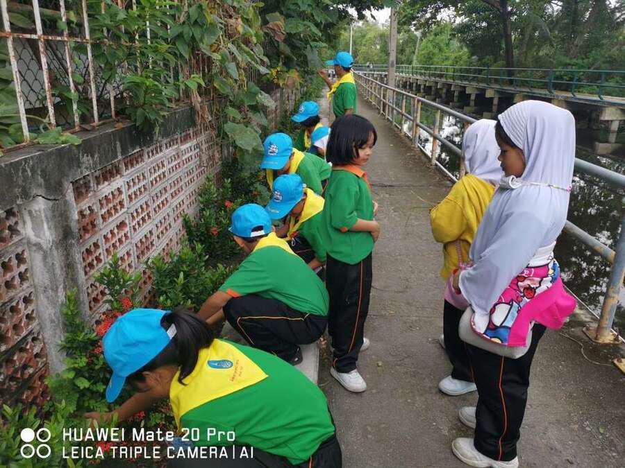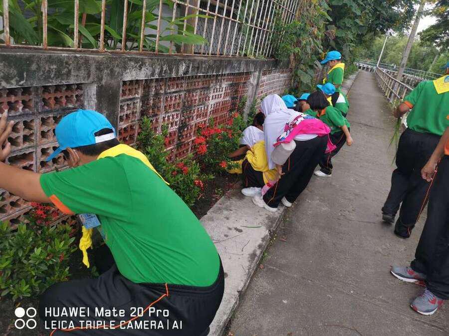 นักเรียนระดับชั้นอนุบาบาล 1- ระดับประถมศึกษาปีที่ 6 ได้ร่วมกันแสดงพลังจิตอาสา