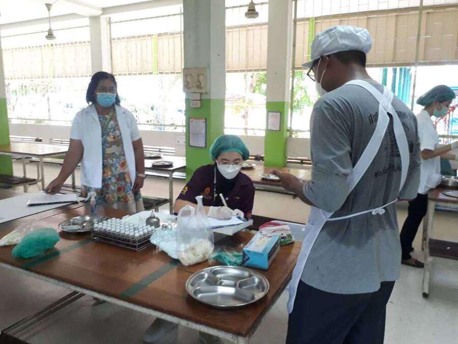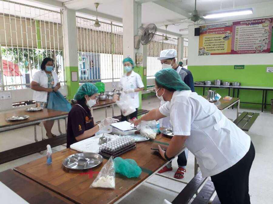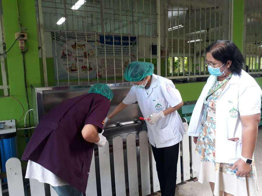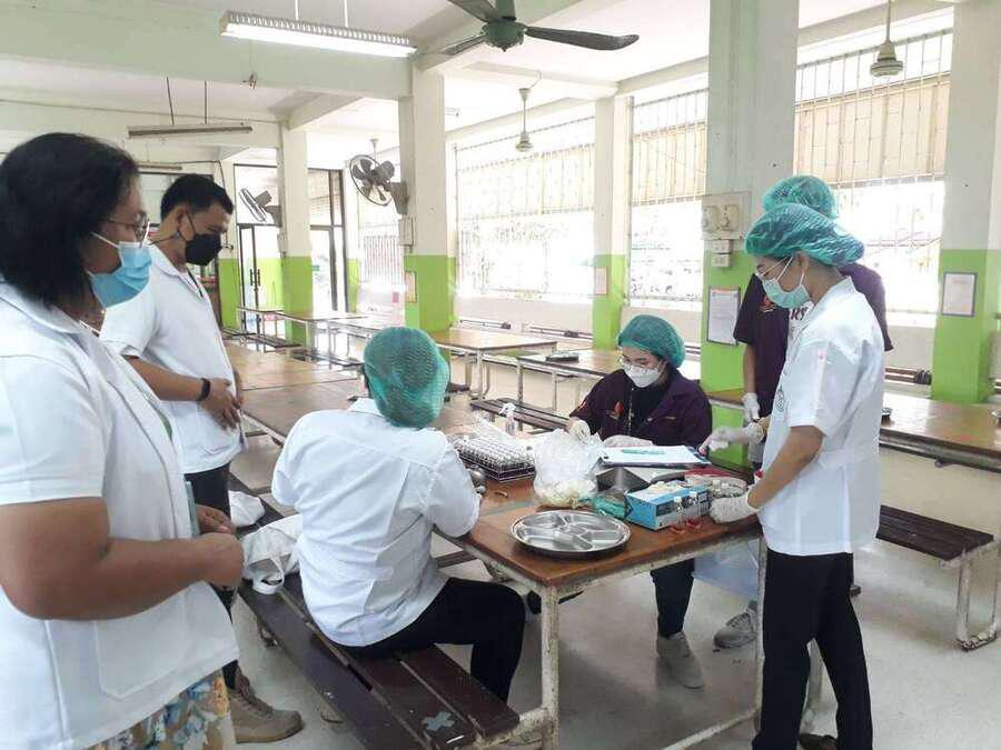 เจ้าหน้าที่มาตรวจสุขาภิบาลห้องครัว เพื่อทำการทดสอบคุณภาพด้านอาหารและด้านสุขาภิบาลโรงอาหารโดยครูทวีพร
