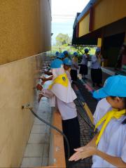 กิจกรรมจิตอาสาเนื่องในโอกาสมหามงคลเฉลิมพระชนมพรรษา สมเด็จพระบรมราชชนนีพันปีหลวง เจริญพระชนมพรรษา 91 พรรษา 12 สิงหาคม 2567 นักเรียนชั้นอนุบาล-ชั้นประถมศึกษาปีที่ 6 ร่วมกันพัฒนาโรงเรียน