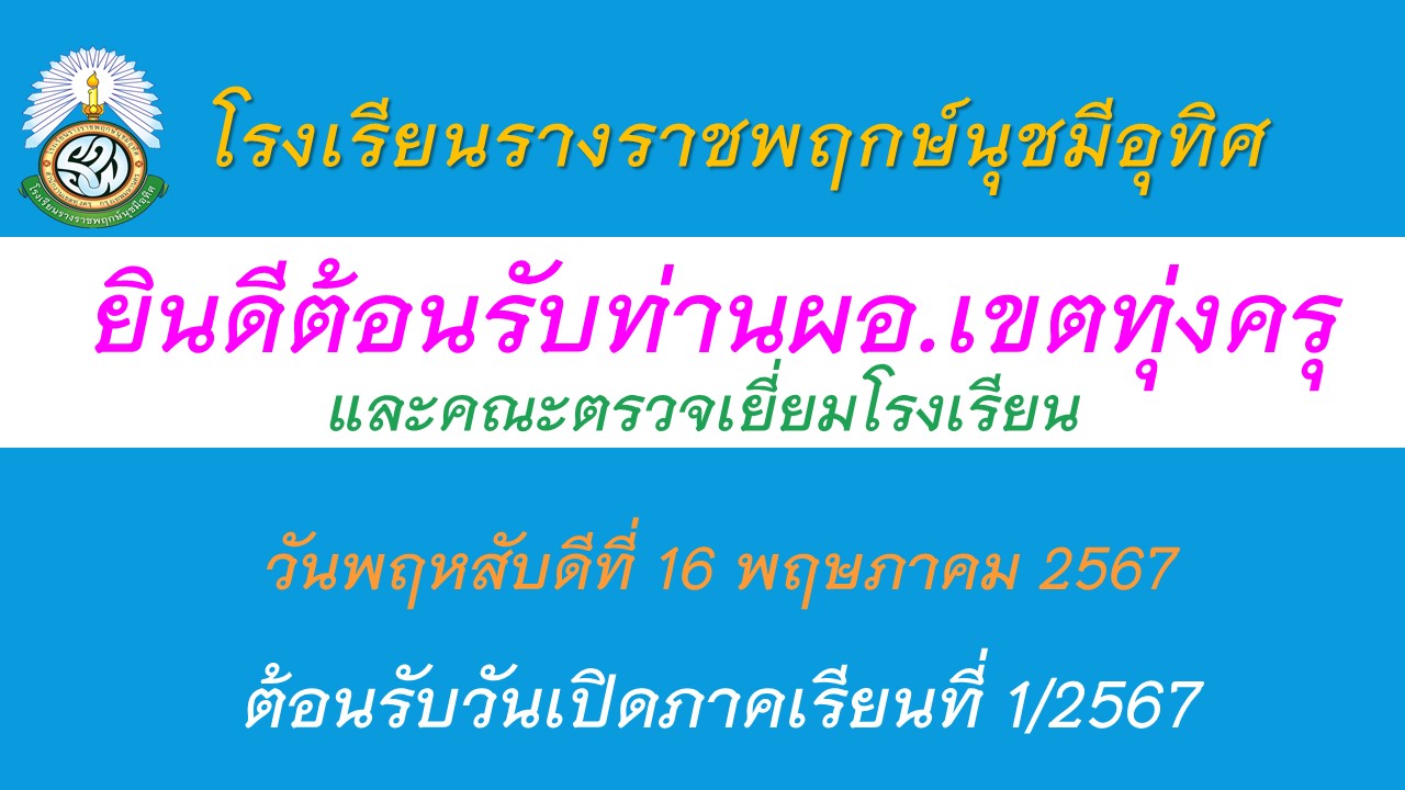 โรงเรียนรางราชพฤกษ์นุชมีอุทิศยินดีต้อนรับท่านผู้อำนวยการเขตทุ่งครุ และคณะตวจเยี่ยมโรงเรียนทุกท่าน ในวันที่ 16 พฤษภาคม 2567 โรงเรียนรางราชพฤกษ์นุชมีอุทิศ จิ๋วแต่แจ๋วนะคะ