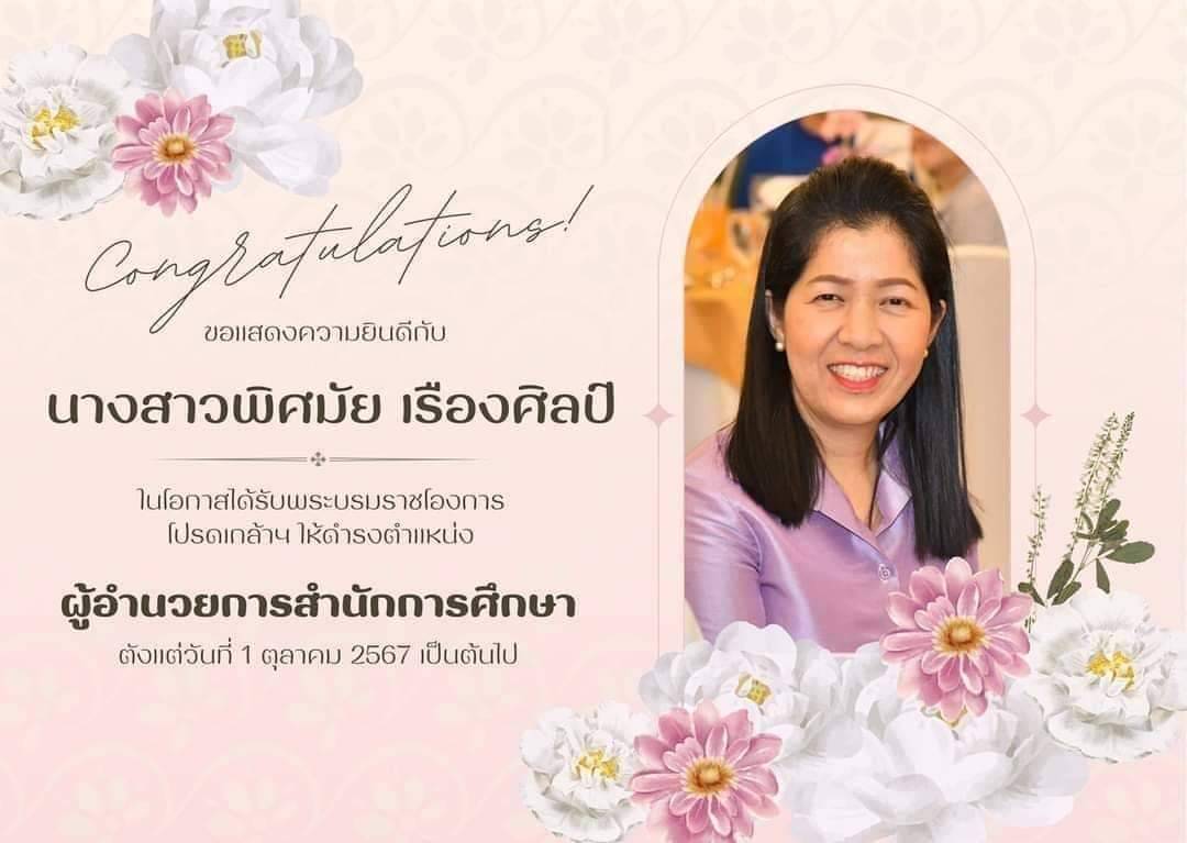 ผู้บริหาร คณะครูและบุคลากรทางการศึกษา โรงเรียนรางราชพฤกษ์นุชมีอุทิศ ขอร่วมแสดงความยินดีกับ นางพิศมัย เรืองศิลป์ ที่ได้รับการพระบรมโองการโปรดเกล้าฯ ให้ดำรงตำแหน่ง ผู้อำนวยการสำนัการศึกษา
