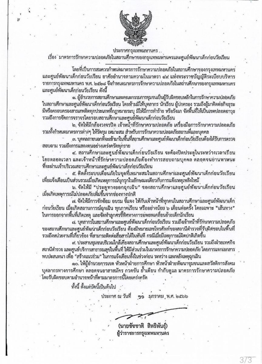 โรงเรียนดำเนินการตามมาตรการความปลอดภัยในสถานศึกษาและศูนย์พัฒนาเด็กก่อนวัยเรียน ตามประกาศของกรุงเทพมหานคร