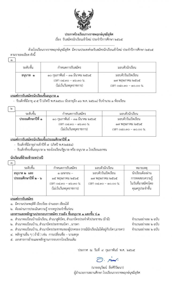 ประกาศรับสมครนักเรียนทุกระดับชั้นปีการศึกษา 2565
