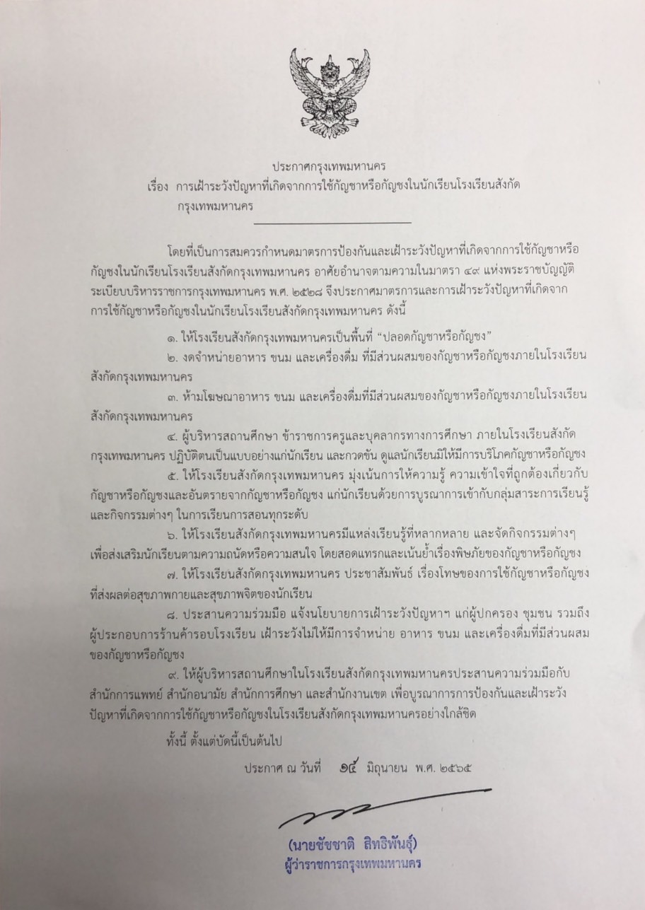 การเฝ้าระวังปัญหาที่เกิดจากการใช้กัญชาหรือกัญชาในนักเรียนในโรงเรียนสังกัดกรุงเทพมหานคร