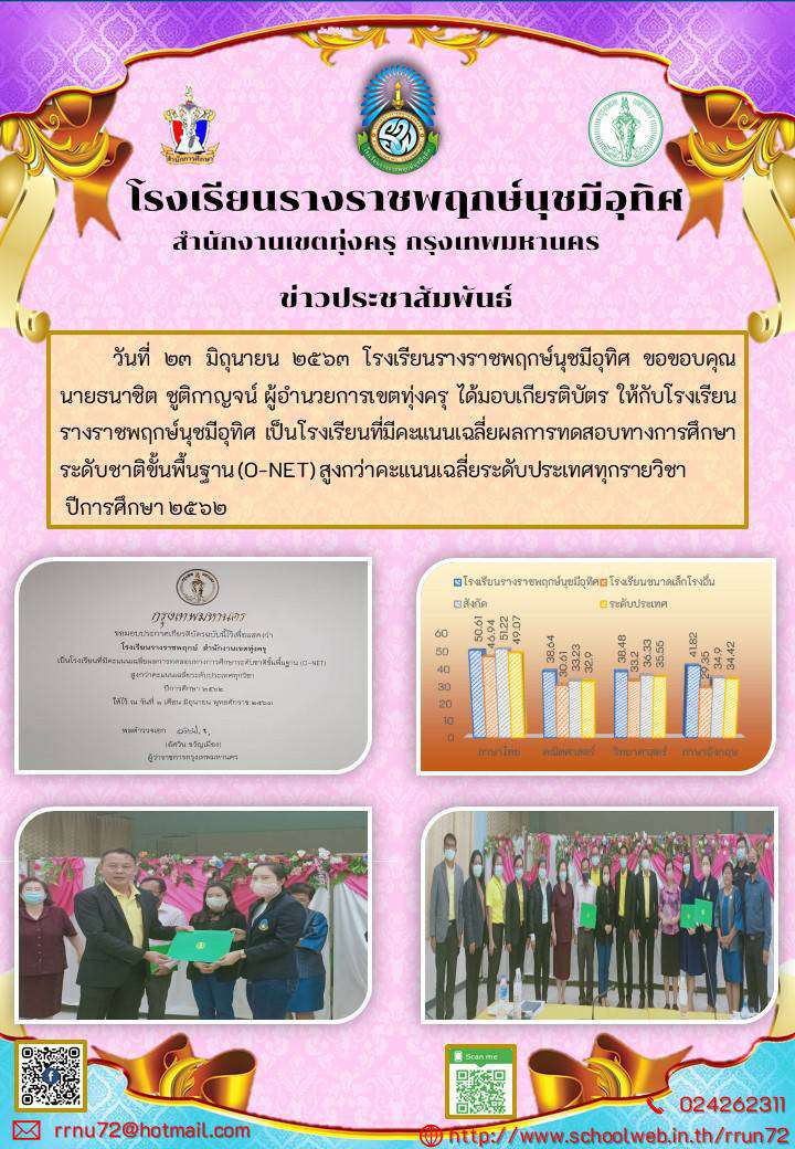 ข่าวรับรางวัล ผ่าน O-net ทุกกลุ่มสาระวิชา