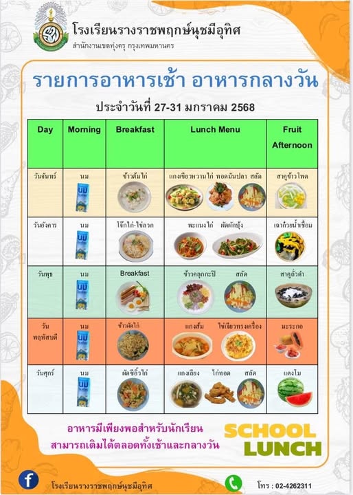 โครงการอาหารเช้า - อาหารกลางวัน ประจำวันที่ 27 - 31 มกราคม 2568 ????