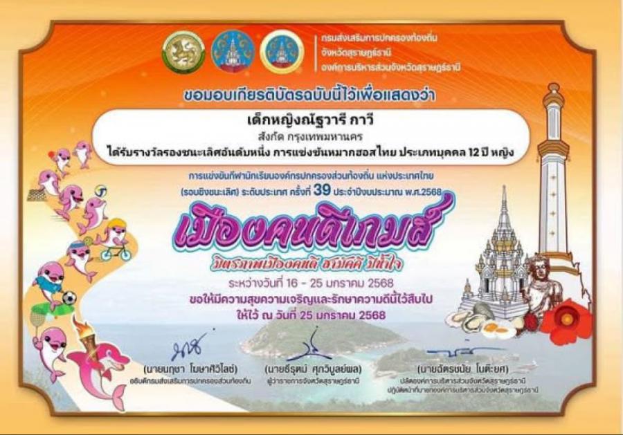 รงเรียนรางราชพฤกษ์นุชมีอุทิศ ขอแสดงความยินดีกับ เด็กหญิงณัฐวารี กาวี นักเรียนชั้นประถมศึกษาปีที่ 6 โรงเรียนรางราชพฤกษ์นุชมีอุทิศ ตัวแทนนักเรียนสังกัดกรุงเทพมหานคร ได้รับรางวัลรองชนะเลิศอันดับหนึ่ง การแข่งขันหมากฮอสไทย ประเภทบุคคล 12 ปี หญิง การแข่งขันกีฬานักเรียนองค์กรปกครองส่วนท้องถิ่น แห่งประเทศไทย (รอบชิงชนะเลิศ) ระดับประเทศ ครั้งที่ 39 ประจำปีงบประมาณ พ.ศ. 2568