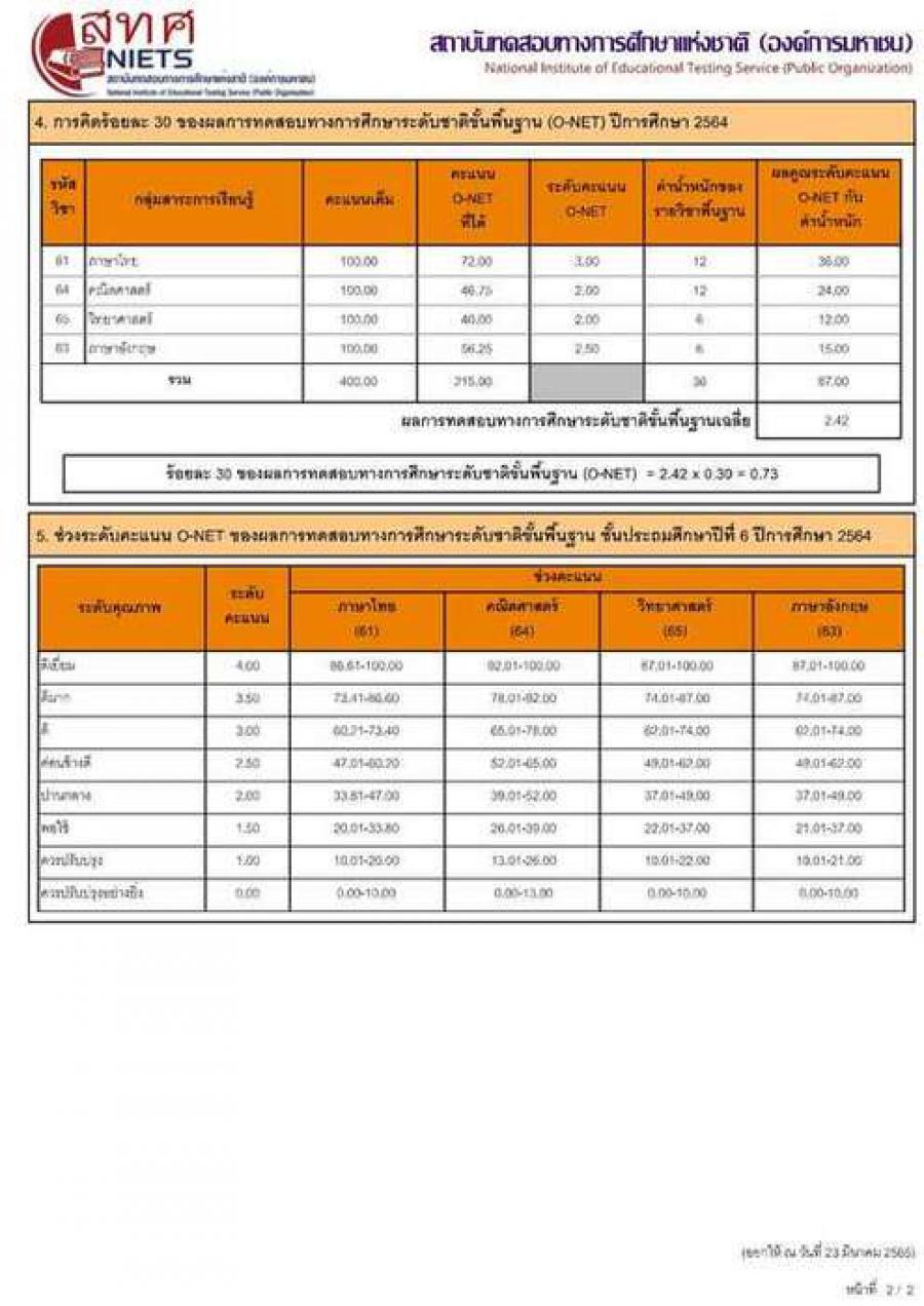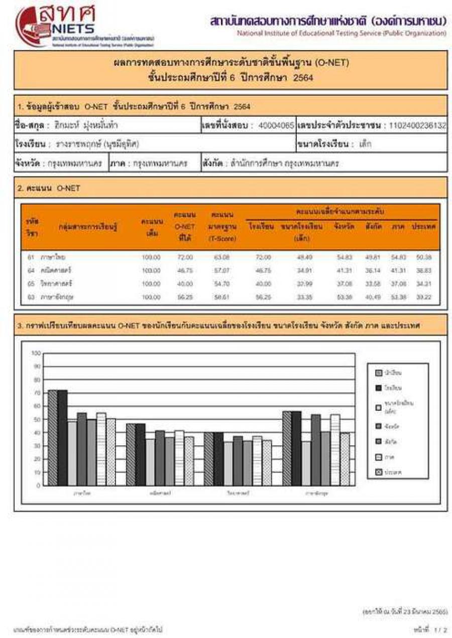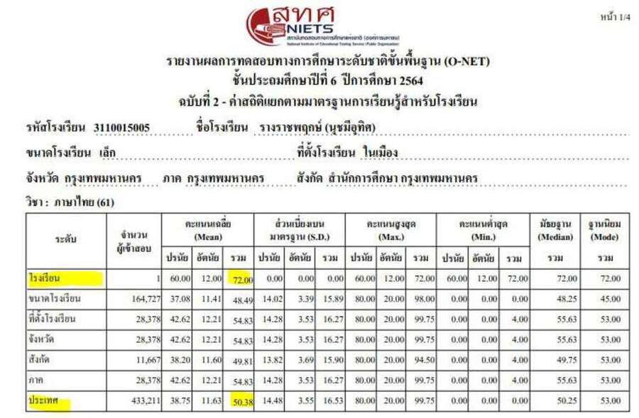 ประกาศ ผลการทดสอบารทดสอบการศึกษาระดับชาติขั้นพื้นฐาน โดยสถาบันทดสอบทางการศึกษาแห่งชาติ หรือ สทศ โรงเรียนรางราชพฤกษ์นุชมีอุทิศ ผ่านการทดสอบ 4 วิชา